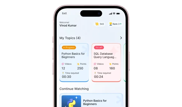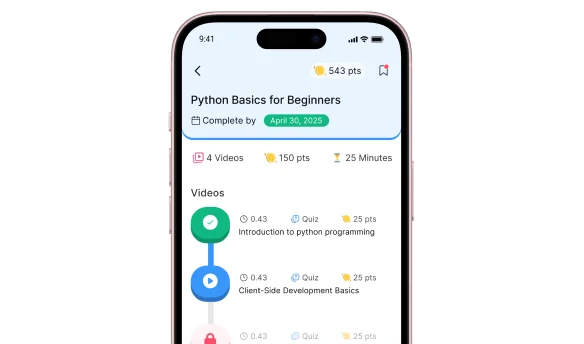 An intuitive user experience designed for modern learners, featuring short videos with like, share, and save options for flexible learning.